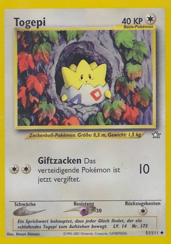 | Kaufen? | Kaufen Sie Ihre Togepi Pokemon-Karte aus dem Neo Genesis-Erweiterung. |