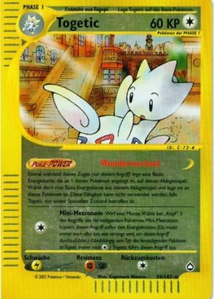 | Kaufen? | Kaufen Sie Ihre Togetic Pokemon-Karte aus dem Aquapolis-Erweiterung. |