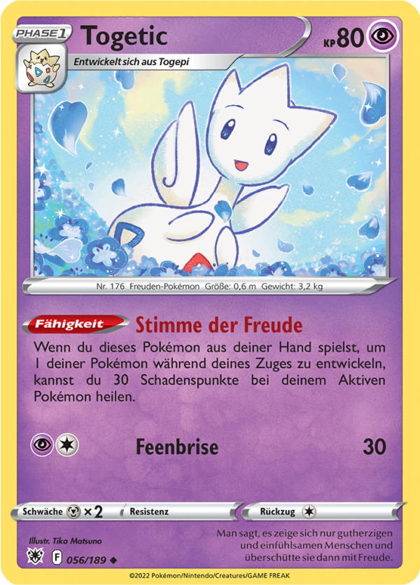 | Kaufen? | Kaufen Sie Ihre Togetic Pokemon-Karte aus dem Astralglanz-Erweiterung. |