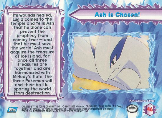 Its wounds healed, Lugia comes to the temple and tells Ash that he alone can prevent the prophecy from coming true — and that he must save the world! Ash must acquire the treasure of Ice Island, for once all three treasures are together and are harmonized with Melody’s flute, the three Pokémon will end their battle, sparing the world from destruction.