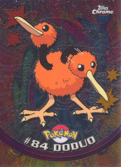 Doduo is a bird that makes up for its poor flying with its incredible speed. As it runs, it leaves behind giant footprints. In “Showdown at the Po-ké Corral,” Ash returns to Pallet Town to train for the Pokémon League. Ash and his rival Gary go on a tour of Professor Oak’s Pokémon research and communication center, and as they walk about, they meet Gary’s captured Doduo.