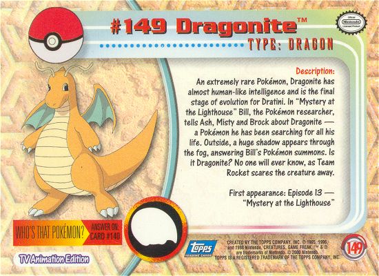An extremely rare Pokémon, Dragonite has almost human-like intelligence and is the final stage of evolution for Dratini. In “Mystery at the Lighthouse” Bill, the Pokémon researcher, tells Ash, Misty and Brock about Dragonite — a Pokémon he has been searching for all his life. Outside, a huge shadow appears through the fog, answering Bill’s Pokémon summons. Is it Dragonite? No one will ever know, as Team Rocket scares the creature away.