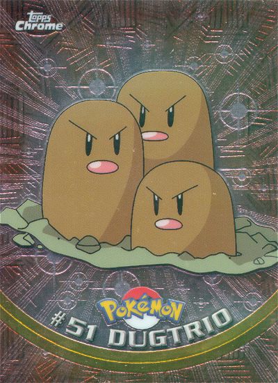 Dugtrio is the final evolved form of Diglett. This tunneling terror is a Pokémon team of Diglett triplets. It triggers huge earthquakes by burrowing 60 miles underground. In “Dig Those Diglett,” Ash and Pikachu are able to defeat the burrowing fury of these enraged Pokémon.