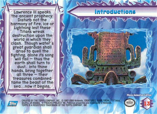Lawrence III speaks the ancient prophecy: Disturb not the harmony of Fire, Ice or Lightning lest these Titans wreak destruction upon the world in which they clash. Though water’s great guardian shall arise to quell the fighting, alone its song will fail — thus the earth shall turn to dust. Into thine hands, bring together all three — their treasures combined tame the beast of the sea…now it begins.