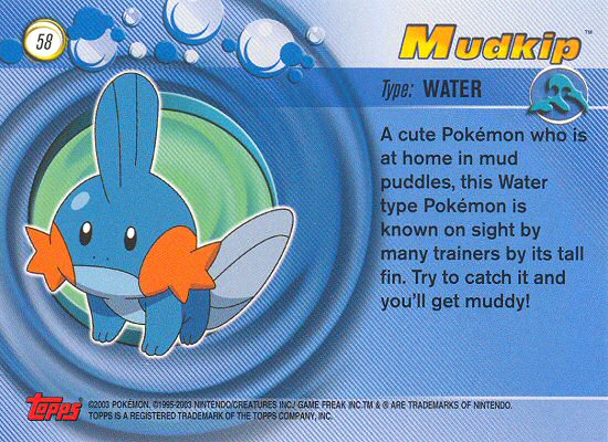 A cute Pokémon who is at home in mud puddles, this Water type Pokémon is known on sight by many trainers by its tail fin. Try to catch it and you’ll get muddy!