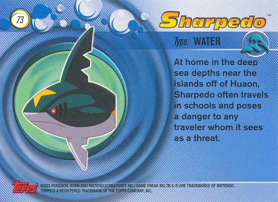 At home in the deep sea depths near the islands off of Huaon, Sharpedo often travels in schools and poses a danger to any traveler whom it sees as a threat.