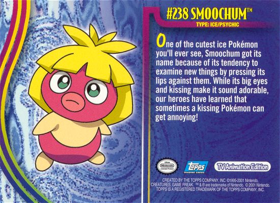 One of the cutest ice Pokémon you’ll ever see, Smoochum got its name because of its tendency to examine new things by pressing its lips against them. While its big eyes and kissing make it sound adorable, our heroes have learned that sometimes a kissing Pokémon can get annoying!