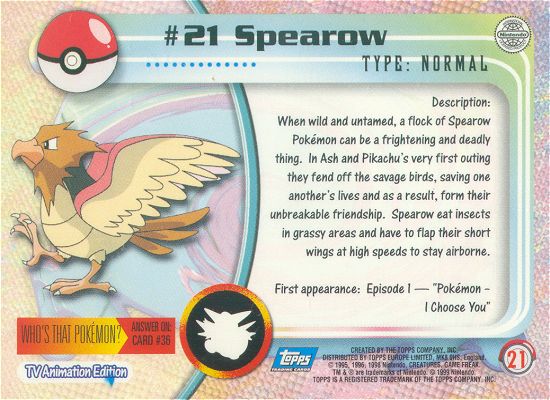 When wild and untamed, a flock of Spearow Pokémon can be a frightening and deadly thing. In Ash and Pikachu’s very first outing they fend off the savage birds, saving one another’s lives and as a result, form their unbreakable friendship. Spearow eat insects in grassy areas and have to flap their short wings at high speeds to stay airborne.