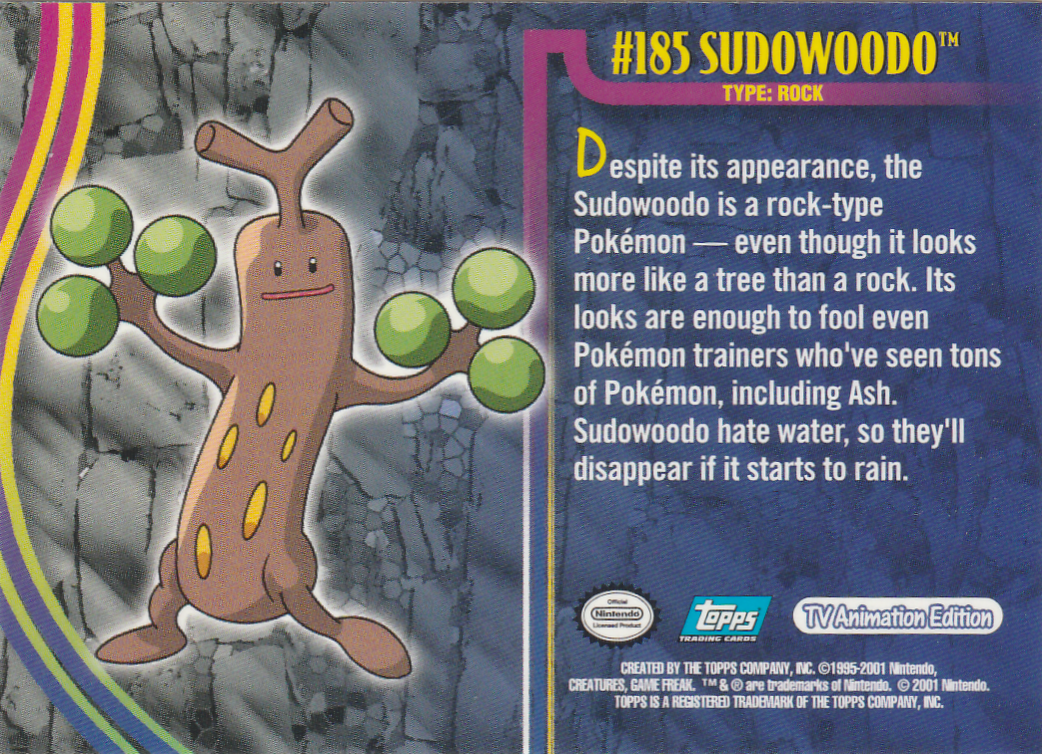 Despite its appearance, the Sudowoodo is a rock-type Pokémon — even though it looks more like a tree than a rock. Its looks are enough to fool even Pokémon trainers who’ve seen tons of Pokémon, including Ash. Sudowoodo hate water, so they’ll disappear if it starts to rain.