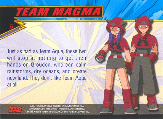 Just as bad as Team Aqua, these two will stop at nothing to get their hands on Groudon, who can calm rainstorms, dry oceans, and create new land. They don’t like Team Aqua at all.