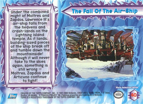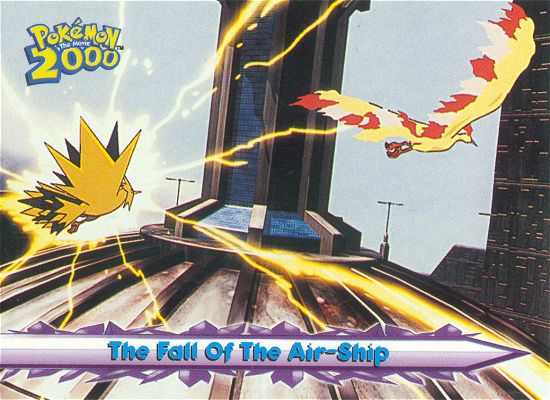 Under the combined might of Moltres and Zapdos, Lawrence III’s air-ship falls from the heavens and crash-lands on the Lightning Island temple. As it lands, building-sized pieces of the ship break off and tumble down the mountainside! Although it will never take to the skies again, something is still wrong — Moltres, Zapdos and Articuno continue to fight!