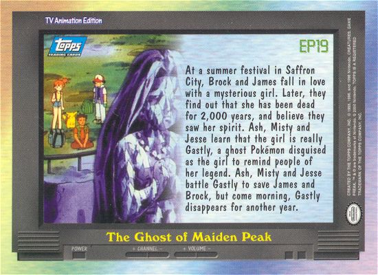At a summer festival in Saffron City, Brock and James fall in love with a mysterious girl. Later, they find out that she has been dead for 2,000 years, and believe they saw her spirit. Ash, Misty and Jesse learn that the girl is really Gastly, a ghost Pokémon disguised as the girl to remind people of her legend. Ash, Misty and Jesse battle Gastly to save James and Brock, but come morning, Gastly disappears for another year.