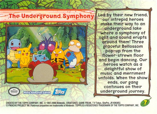 Led by their new friend, our intrepid heroes make their way to an underground lake where a symphony of light and sound erupts around them! Three graceful Bellossom pop-up from the flower-strewn floor and begin dancing. Our heroes watch as a delightful show of music and merriment unfolds. When the show ends, our gang continues on their underground journey.