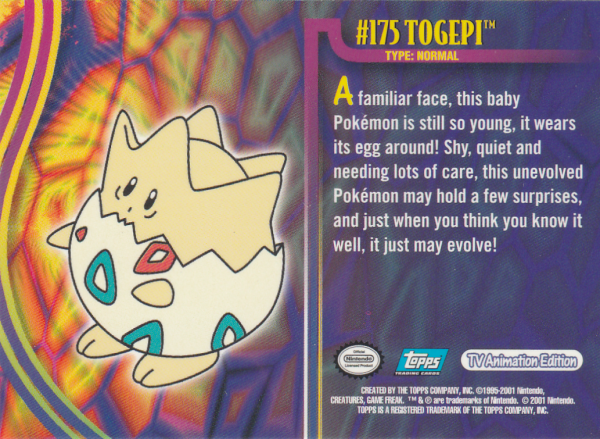 A familiar face, this baby Pokémon is still so young, it wears its egg around! Shy, quiet and needing lots of care, this unevolved Pokémon may hold a few surprises, and just when you think you know it well, it just may evolve!