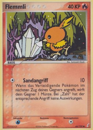 | Kaufen? | Kaufen Sie Ihre Flemmli Pokemon-Karte aus dem Smaragd-Erweiterung. |