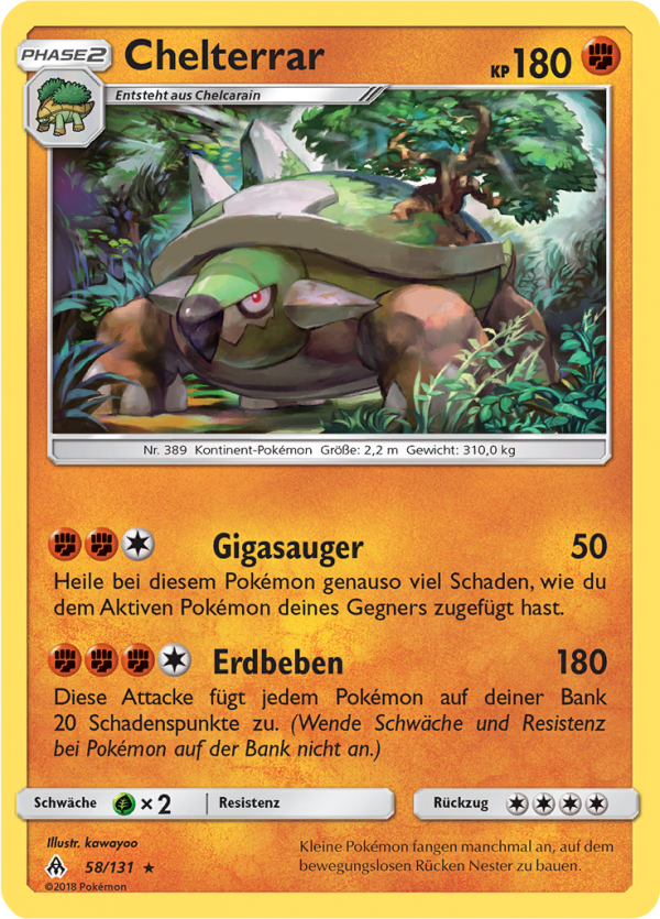 | Kaufen? | Kaufen Sie Ihre Chelterrar Pokemon-Karte aus dem Grauen der Lichtfinsternis-Erweiterung. |