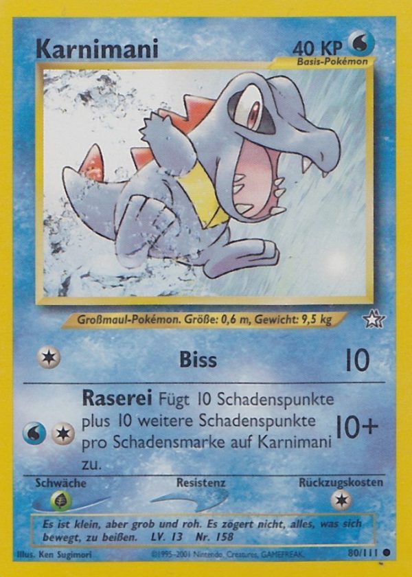 | Kaufen? | Kaufen Sie Ihre Karnimani Pokemon-Karte aus dem Neo Genesis-Erweiterung. |