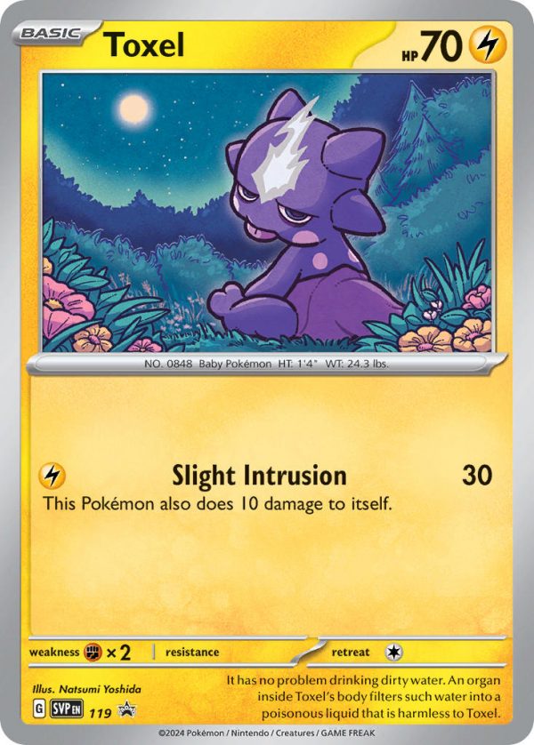 | Kaufen? | Kaufen Sie Ihre Toxel Pokemon-Karte aus dem Scarlet & Violet Promos-Erweiterung. |