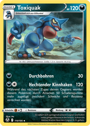 | Alle Karten | Sehen Sie alle Toxiquak-Pokémonkarten in einer Übersicht. |