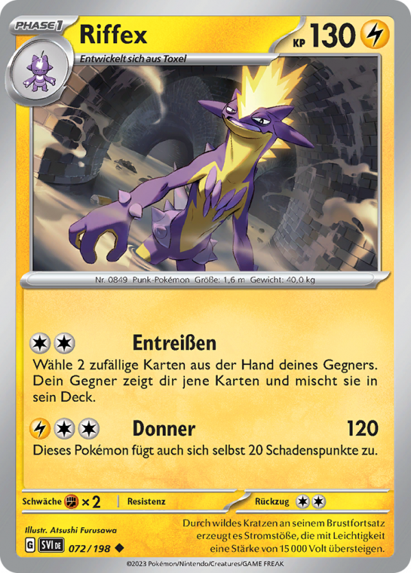| Kaufen? | Kaufen Sie Ihre Riffex Pokemon-Karte aus dem Karmesin & Purpur-Erweiterung. |