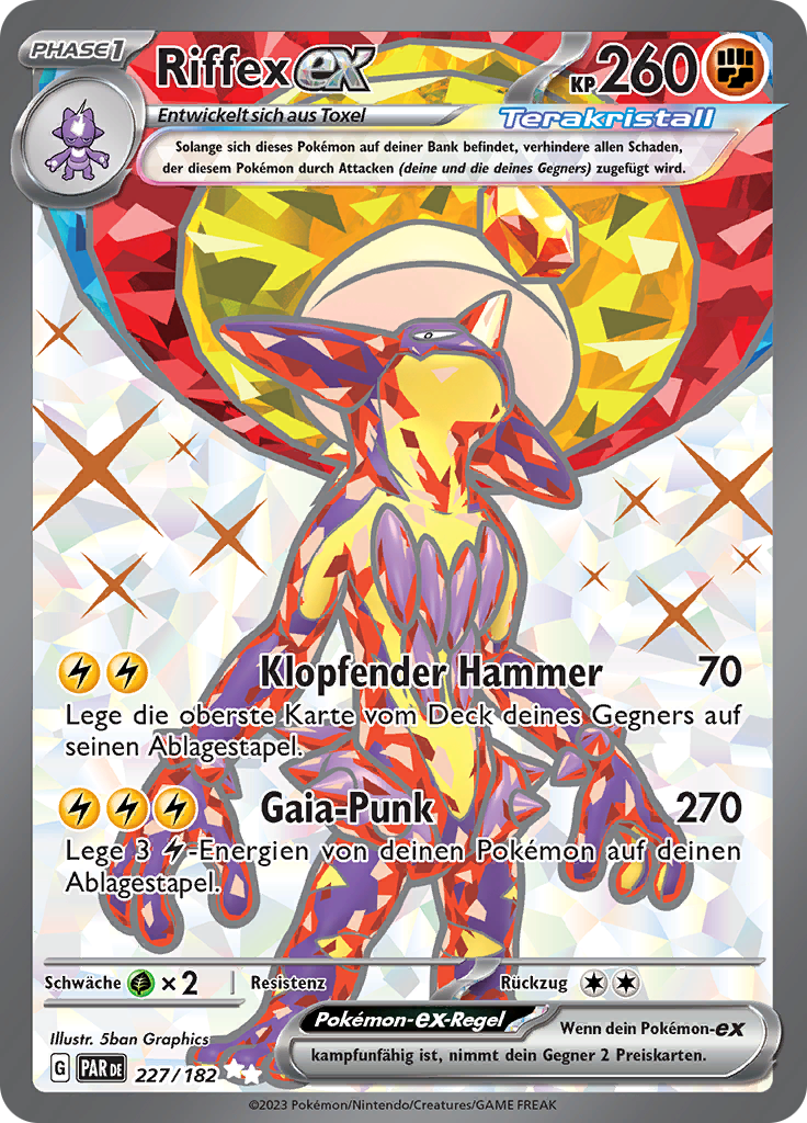 | Karten | Paradoxrift besteht aus 266 Pokémon Karten. |