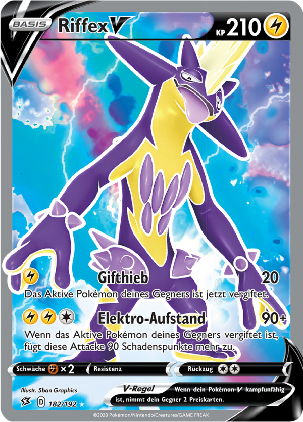 | Kaufen? | Kaufen Sie Ihre Riffex V Pokemon-Karte aus dem Clash der Rebellen-Erweiterung. |