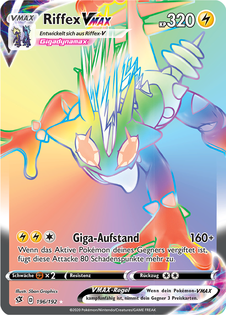 | Kaufen? | Kaufen Sie Ihre Riffex VMAX Pokemon-Karte aus dem Clash der Rebellen-Erweiterung. |