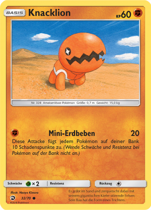| Alle Karten | Sehen Sie alle Knacklion-Pokémonkarten in einer Übersicht. |