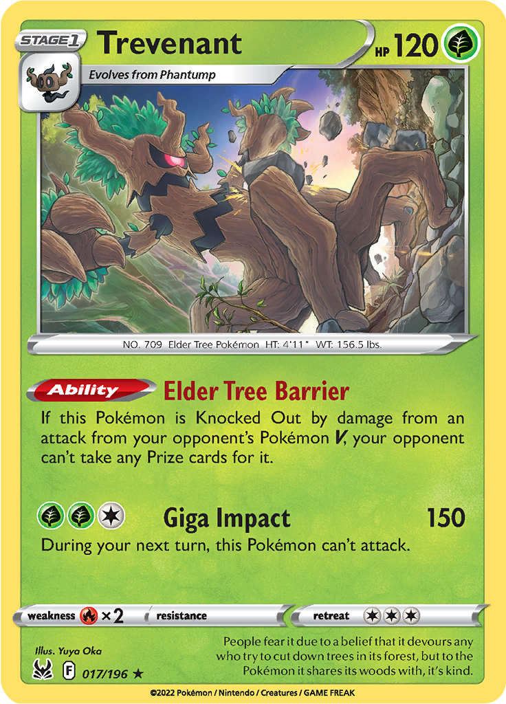 | Kaufen? | Kaufen Sie Ihre Trevenant Pokemon-Karte aus dem Lost Origin-Erweiterung. |