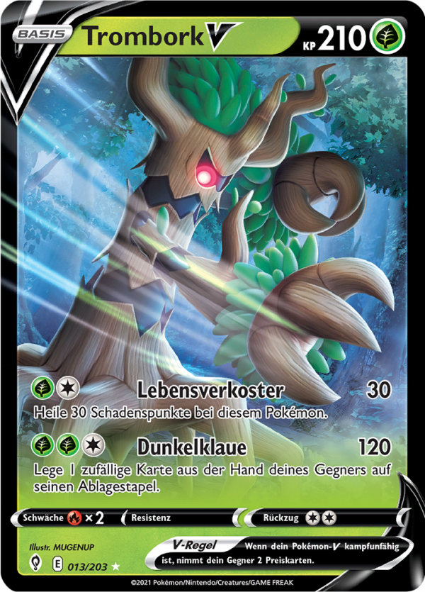 | Kaufen? | Kaufen Sie Ihre Trombork V Pokemon-Karte aus dem Drachenwandel-Erweiterung. |