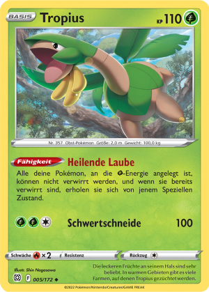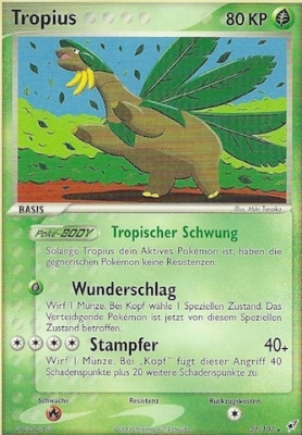 | Alle Karten | Sehen Sie alle Tropius-Pokémonkarten in einer Übersicht. |