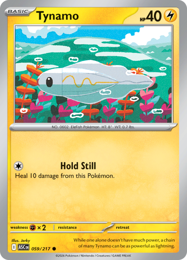 | Kaufen? | Kaufen Sie Ihre Tynamo Pokemon-Karte aus dem Ascended Heroes-Erweiterung. |