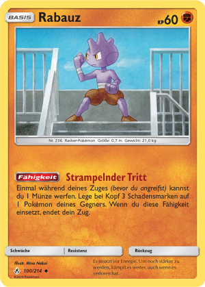 | Alle Karten | Sehen Sie alle Rabauz-Pokémonkarten in einer Übersicht. |