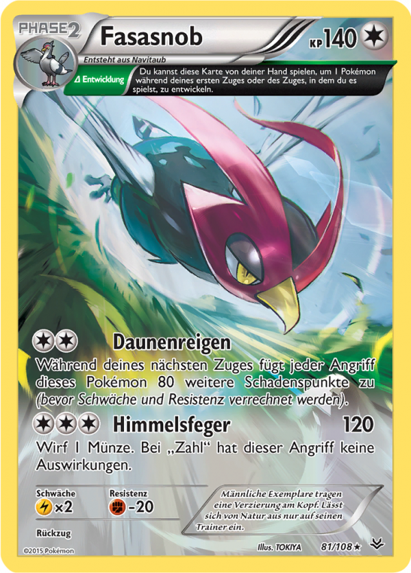 | Kaufen? | Kaufen Sie Ihre Fasasnob Pokemon-Karte aus dem Drachenleuchten-Erweiterung. |