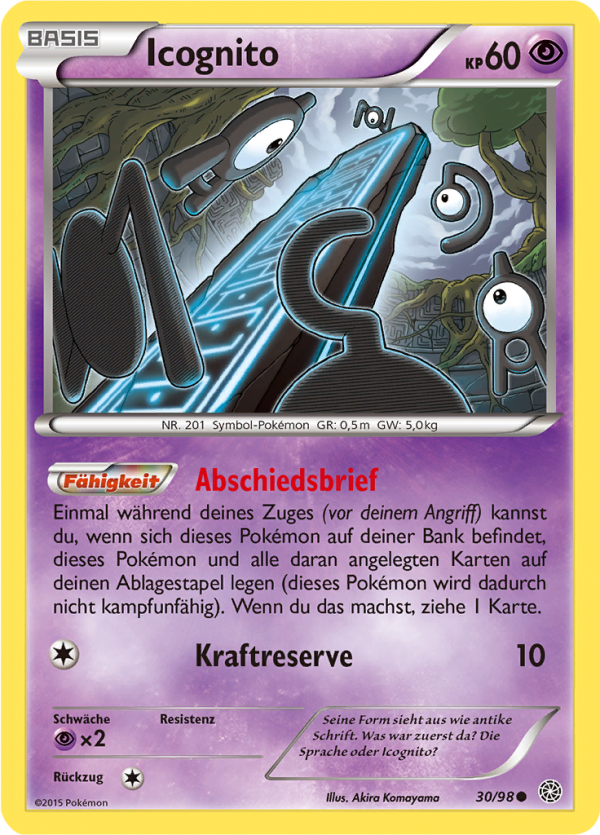 | Kaufen? | Kaufen Sie Ihre Icognito Pokemon-Karte aus dem Ewiger Anfang-Erweiterung. |