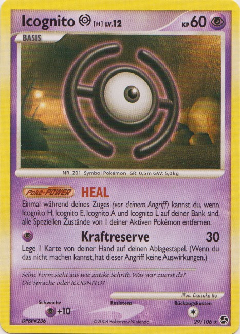 | Alle Karten | Sehen Sie alle Icognito-Pokémonkarten in einer Übersicht. |