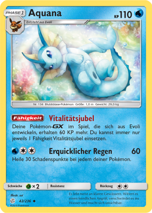 | Alle Karten | Sehen Sie alle Aquana-Pokémonkarten in einer Übersicht. |