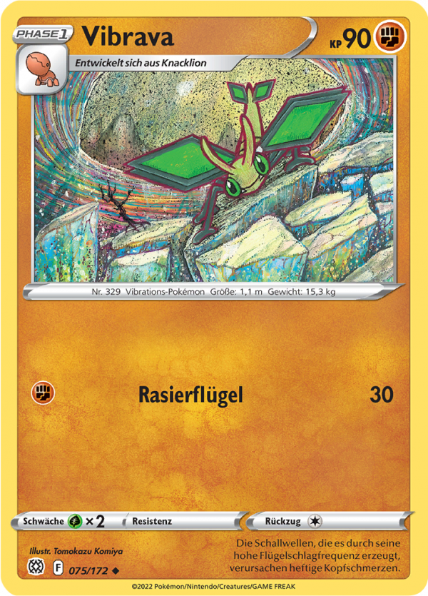 | Kaufen? | Kaufen Sie Ihre Vibrava Pokemon-Karte aus dem Strahlende Sterne-Erweiterung. |