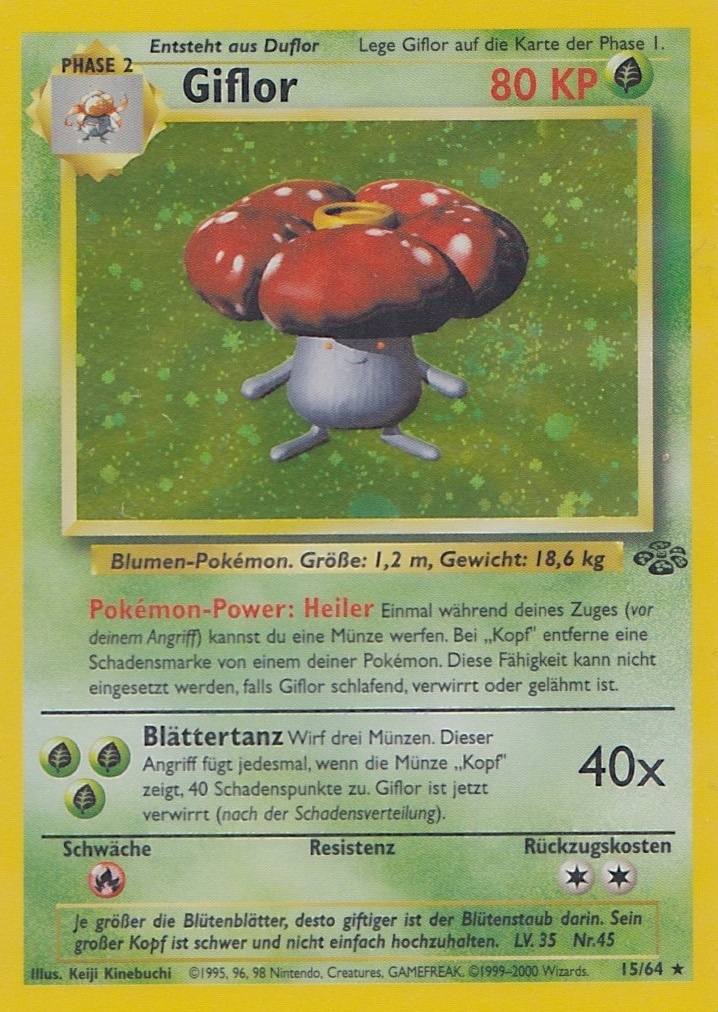 | Kaufen? | Kaufen Sie Ihre Giflor Pokemon-Karte aus dem Dschungel-Erweiterung. |