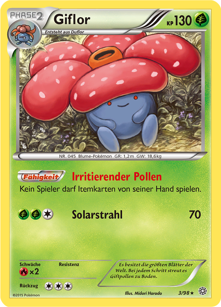 | Alle Karten | Sehen Sie alle Giflor-Pokémonkarten in einer Übersicht. |