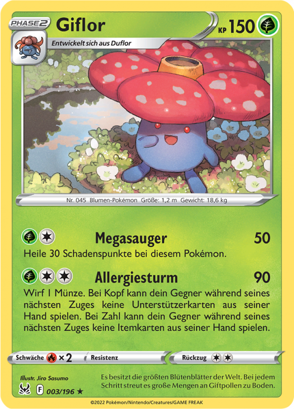 | Kaufen? | Kaufen Sie Ihre Giflor Pokemon-Karte aus dem Verlorener Ursprung-Erweiterung. |
