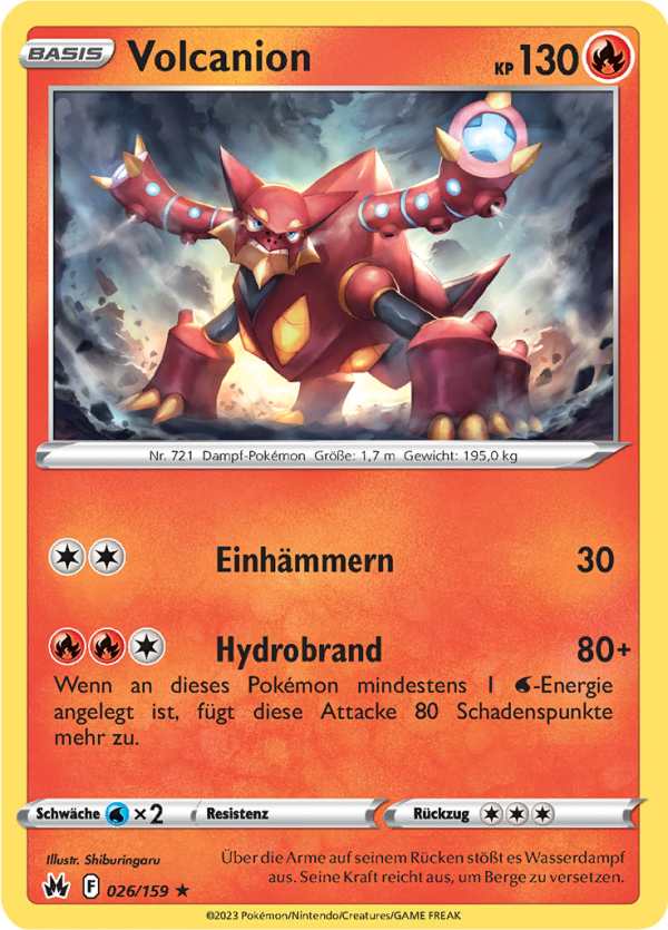 | Kaufen? | Kaufen Sie Ihre Volcanion Pokemon-Karte aus dem Zenit der Könige-Erweiterung. |