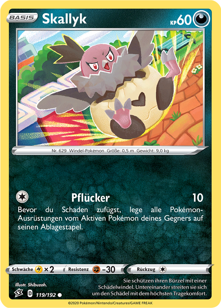 | Kaufen? | Kaufen Sie Ihre Skallyk Pokemon-Karte aus dem Clash der Rebellen-Erweiterung. |
