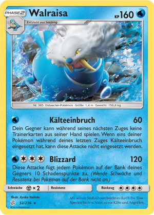 | Alle Karten | Sehen Sie alle Walraisa-Pokémonkarten in einer Übersicht. |