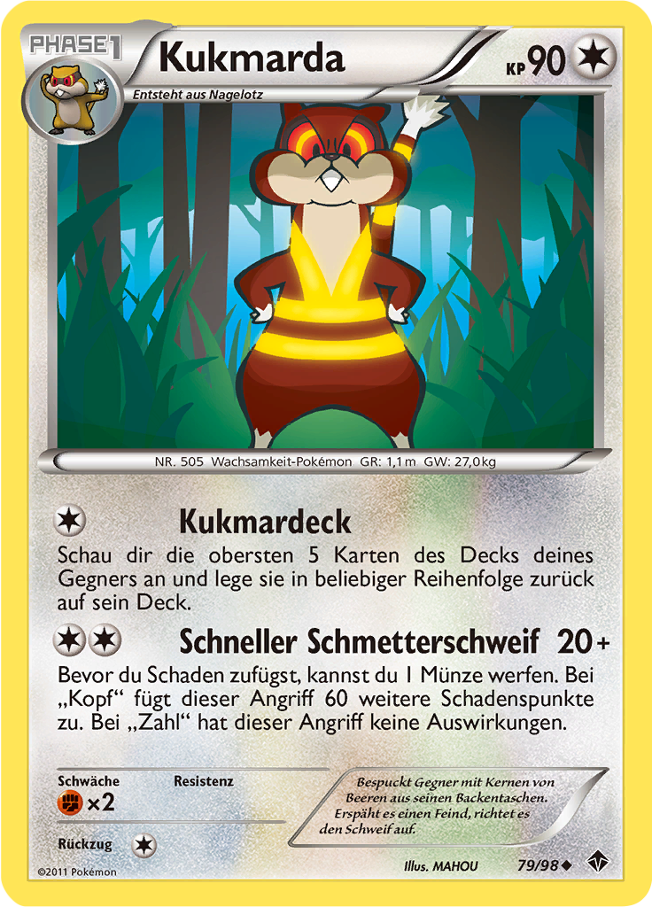 | Erscheinungsdatum | Diese Pokemon Karte wurde am 12 October 2011 von Nintendo veröffentlicht. |