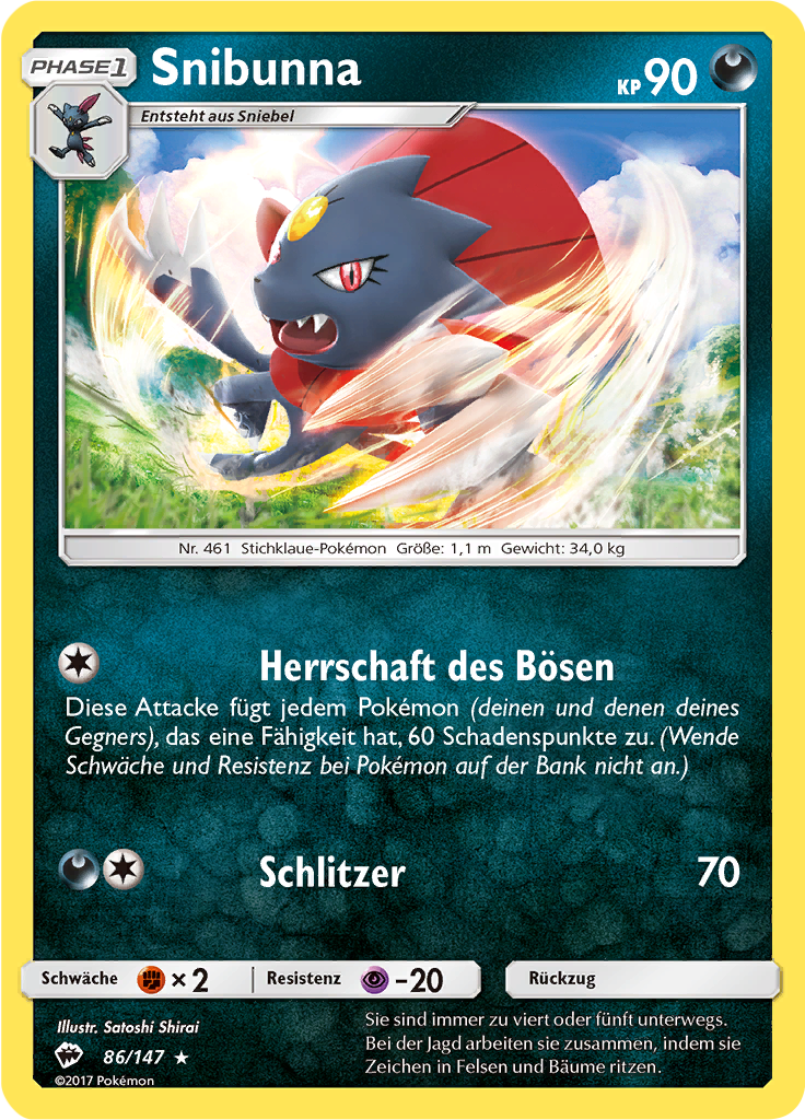 | Alle Karten | Sehen Sie alle Snibunna-Pokémonkarten in einer Übersicht. |