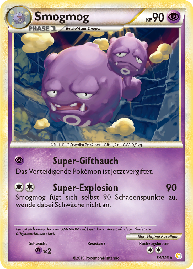 | Kaufen? | Kaufen Sie Ihre Smogmog Pokemon-Karte aus dem Heartgold und Soulsilver-Erweiterung. |
