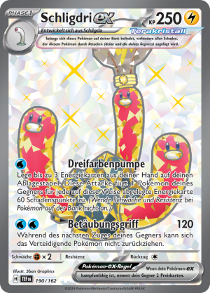 | Kaufen? | Kaufen Sie Ihre Schligdri-ex Pokemon-Karte aus dem Gewalten der Zeit-Erweiterung. |