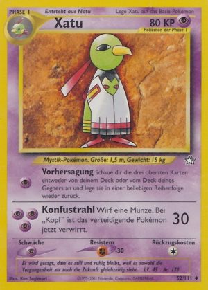 | Kaufen? | Kaufen Sie Ihre Xatu Pokemon-Karte aus dem Sandsturm-Erweiterung. |