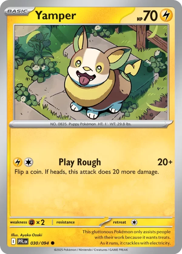 | Kaufen? | Kaufen Sie Ihre Yamper Pokemon-Karte aus dem Phantasmal Flames-Erweiterung. |